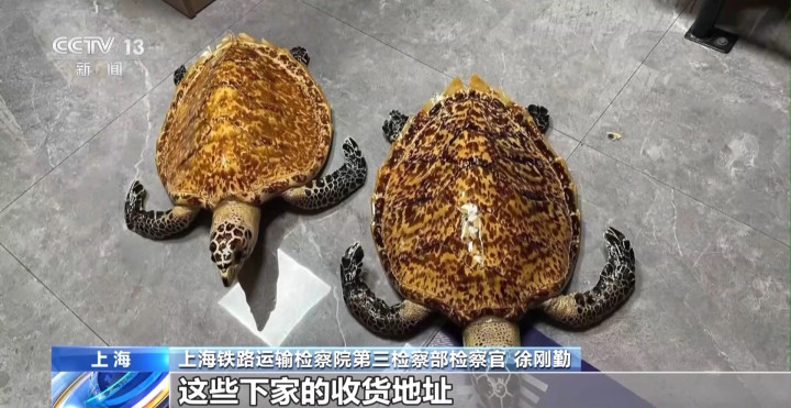 2025年8月,上海铁路运输检察院会同上海市崇明区人民法院、上海市公安局崇明分局,将6件玳瑁标本移交给上海市水生野生动植物保护研究中心,这些标本都是办案人员在上海、辽宁、山东等地的买家手中追回的,最大的一个标本长度87厘米、宽度62厘米,和一个成年人的上半身差不多大小。这些玳瑁标本将用于科研与公众科普教育,让更多人了解玳瑁的珍稀与保护的重要性。